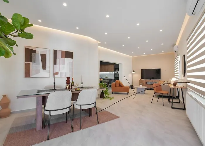 The spacious 140 m² Coralie 3 Bedroom Apartment 40M From The Beach Chania includes a terrace and is situated around a 5-minute stroll from lazareta. The Historical Archive of Crete is within a few blocks of the apartment while the Old Venetian Harbor is only 1.5 km away.